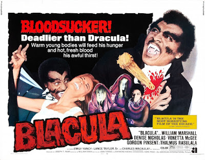 Obviously I'm saying that today's film is a beautiful example: Blacula. That is a title that tells you basically everything you need to know straight away, in one word. Sure, they could have gone with "Black Dracula"--and in some markets they did--but that lacks the swift punch of Blacula and isn't any more specific when you really think about it.