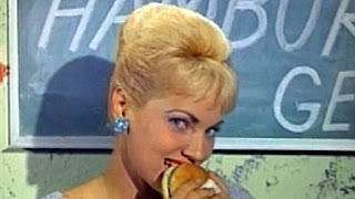 Eventually he talks her into joining him at his favorite local diner, the Greasy Spoon. It might be the only restaurant in town, for all I know, but there's not many folks in it at any given time. At any rate, the special of the day is "Leg of Lamb" and the movie makes damn sure you get the significance. The proprietor of the diner, Spike (No Clue), greets them and immediately takes a shine to Anne. However, she doesn't care for him calling her "baby" and tells him he can call her "Miss Poultry." Spike laughs at that and starts calling her "Chicken," which she just loves. However, Spike does eventually get to taking their order and when they both order the special, Anne finds it odd that he just yells "two orders" to the cook. Spike shrugs and tells her they don't currently have anything else but the special.