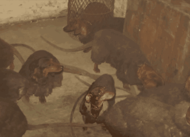 Surely even in 1983 that reputation of The Killer Shrews had to be well-known enough to be a laughingstock. Yet, when it came time to ostensibly film an adaptation of James Herbert's novel The Rats, about giant killer rats, someone in the production decided that they were going to realize the giant rats by putting dachshunds in costumes.