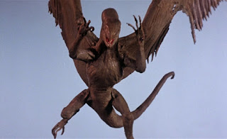 I reviewed this years ago when I was trying to do a "thing" where I only watched Michael Moriarty movies (I quickly ran aground because I watched 'Hitler Meets Christ' and was left basically non-functional for six months). I couldn't shake the idea that this movie was the result of Larry Cohen getting halfway through making this aztec human sacrifice crime thriller thing, then suddenly being forced by the studio to do something with this completely unrelated Harryhausen-style dragon footage they had lying around.