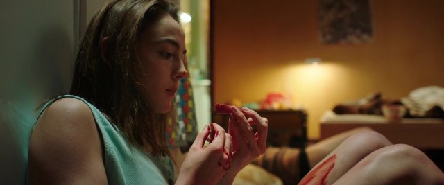 Unfortunately, this causes her sister to cut her own finger off with the scissors. Alexia passes out and Justine calls for an ambulance, but can't find any ice to put the severed finger on. It gets so much worse, however, because suddenly that meat craving hits Justine again and before she can really stop herself she is gleefully chewing the flesh off the severed digit.